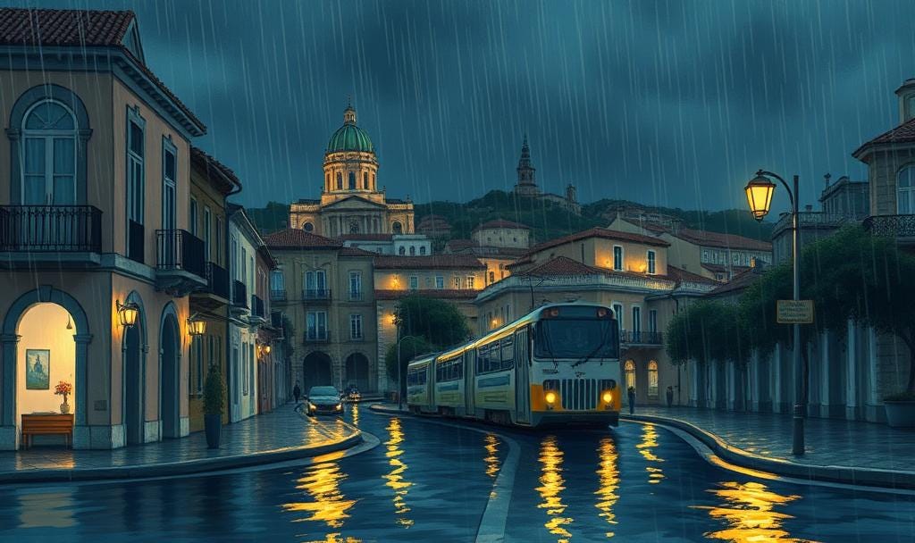 A gentle rain falls as I make my way down to the local restaurant I spotted earlier. Their patio is empty, predictably. You never know when drizzle turns torrential here. Same in Rome. New York.